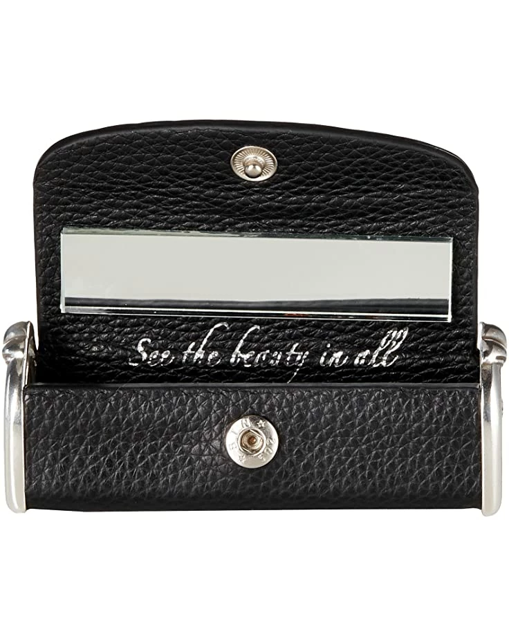 - Holds your favorite lipstick and features a mirror on inside flap.