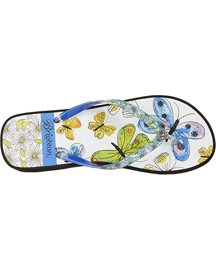 - The watercolor artwork of whimsical, colorful butterflies in a garden of daisies on these flip flops celebrates the carefree joys of spring and summer.