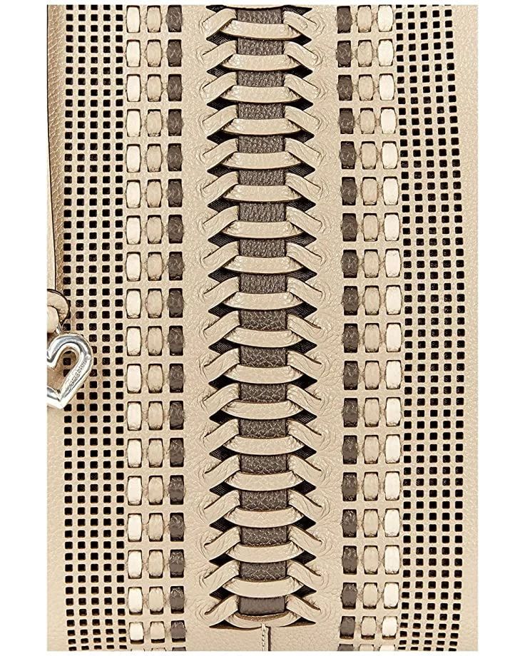 - Woven jacquard lining includes two zip pockets and two slip pockets.