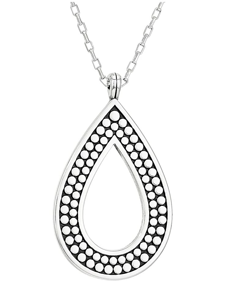 - The Brighton® Pebble Open Tear Drop Necklace features a reversible pendant. It’s an organic-shaped pebble motif on one side, while the reverse imitates the regular cadence of Balinese style dots.