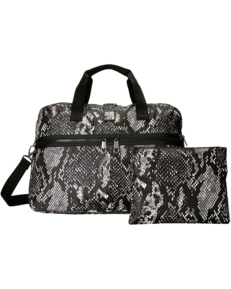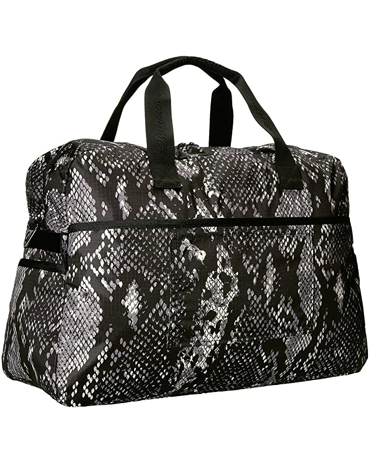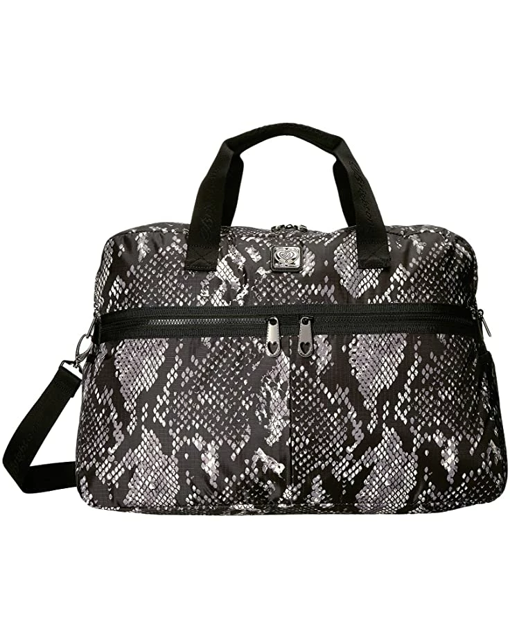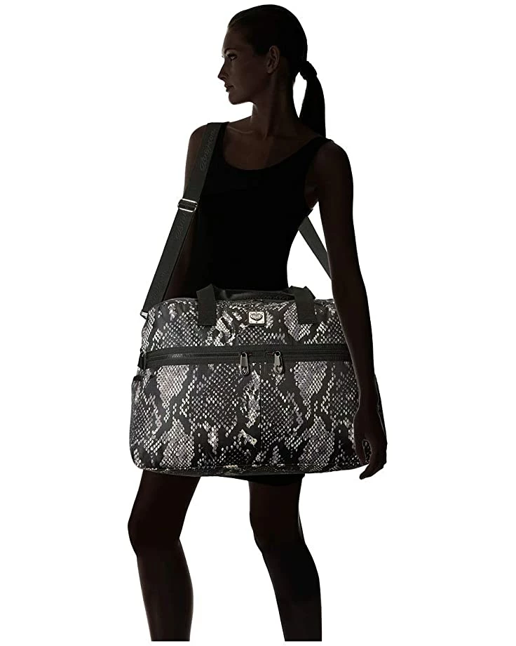 - For the fashionista on-the-go this zippered synthetic Brighton® Round Tripper Duffel bag with carrying handles and detachable, adjustable crossbody strap keeps your essentials right where you need them.